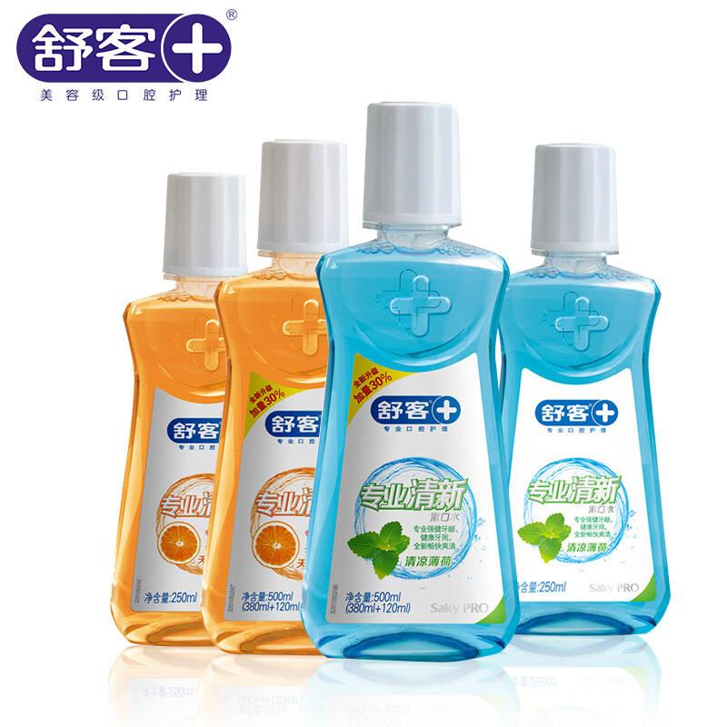 推荐理由:舒客漱口水护理,去口臭口腔异味清新口气,不会很刺激,价位也合适,没有太大的刺激性,入口有点轻微的辣,有点倒牙, 不过清新口气还是不错的,漱口后感觉很清爽。舒客,是广州薇美姿实业有限公司旗下的口腔护理品牌,创立于2006年,是国内品类齐全的专业口腔护理品牌,主要有舌刮器、牙膏牙刷、牙线棒、漱口水、口清新等产品。凝聚了国际口腔领域的先进技术和舒客口腔护理研究中心的最新科研成果,为各种口腔问题提供专业解决方案,全方位呵护口腔,让用户拥有健康的口腔环境,让世界拥有甜美的微笑。2011年7月,舒客针对人体早晚口腔环境不同,推出全新产品益早益晚系列牙膏,“早晚分护”,专业对抗各种口腔问题。
